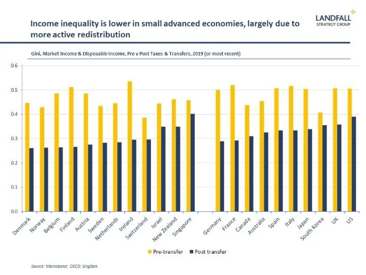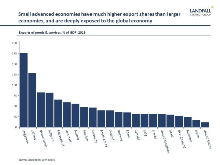 Small advanced economies have focused on managing risks and ensuring that the costs and benefits of global engagement are broadly distributed; through social insurance, active labour market policy, and so on. And they have actively worked to develop competitive advantage in global markets. This policy approach has allowed small economies to maintain high levels of support for open policies.