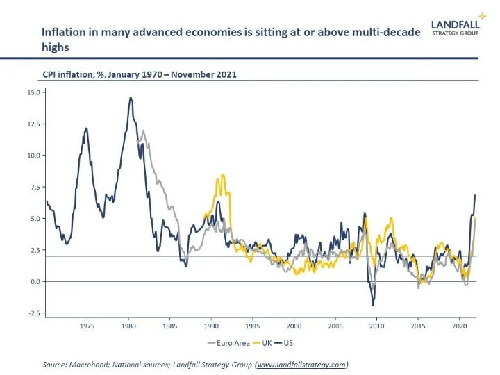 And public concerns about rising prices are seen from the UK to New Zealand and beyond. In more extreme cases, very high inflation is associated with political and social instability. Turkey’s inflation rate of ~20% (due to policy mismanagement) is posing a significant political risk to President Erdogan.