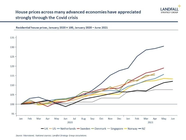 House prices have surged over the past 18 months, counter to expectations at the start of Covid. This is widespread across advanced economies, but many small economies have seen particularly strong house price appreciation: New Zealand is up 31% since January 2020, Sweden by 19%, and the Netherlands by 16%. US and UK house prices are up by 16% and 12% respectively. The wealth effect has been positive for the recovery, but it has further reinforced deep patterns of wealth inequality and worsened housing affordability.