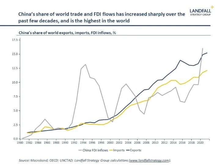 A meaningful decoupling from China over time would be more costly again. Some decoupling is underway already, and more is inevitable as geopolitical tensions continue – although China’s scale and centrality means it cannot be sanctioned as completely as Russia.