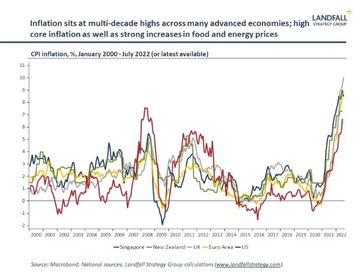 Inflation has surged to multi-decade highs across advanced economies for a variety of reasons: excess demand, supply-side constraints, high energy and food prices, and so on. This is true in Asia as in Europe, even if inflation rates are slightly more muted in Asia (partly because Asian economies are less exposed to higher energy prices, particularly gas).