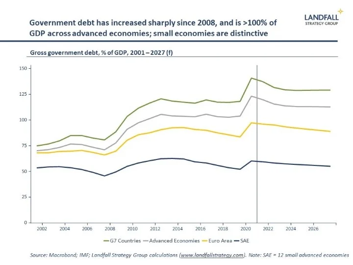 These schemes helped to limit unemployment and supported economic activity. But across advanced economies, gross government debt rose by ~20% of GDP through the pandemic.